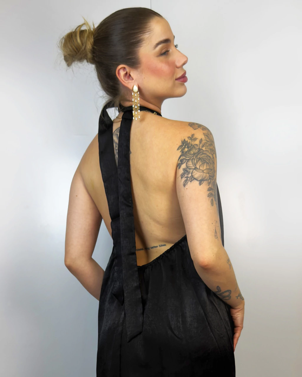 Elegante e cheio de movimento, este vestido longo em cetim é a escolha perfeita para quem busca sofisticação com um toque moderno. Com modelagem soltinha e caimento suave, ele realça a silhueta com delicadeza e conforto. O decote halter adiciona um ar refinado, enquanto as costas abertas garantem um visual marcante e sensual na medida certa.